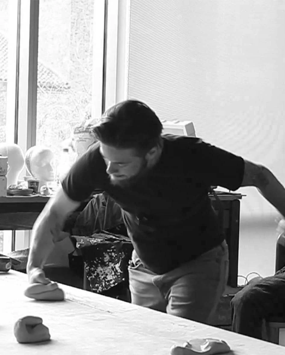 This film was shot over the course of two days. The first day was a typical day in the studio for me which spanned a total of eight hours. During this time I meticulously hand sculpted ten realistic representations of different shaped and sized penises out of clay. The sculptures then sat overnight to dry out to a ‘leather dry’ consistency. The next day I returned to the studio, organized and cleaned my work space with various tools and methods, then one by one “destroyed” each sculpture. The entire process was captured on film and then compressed to a 10:00 minute video.